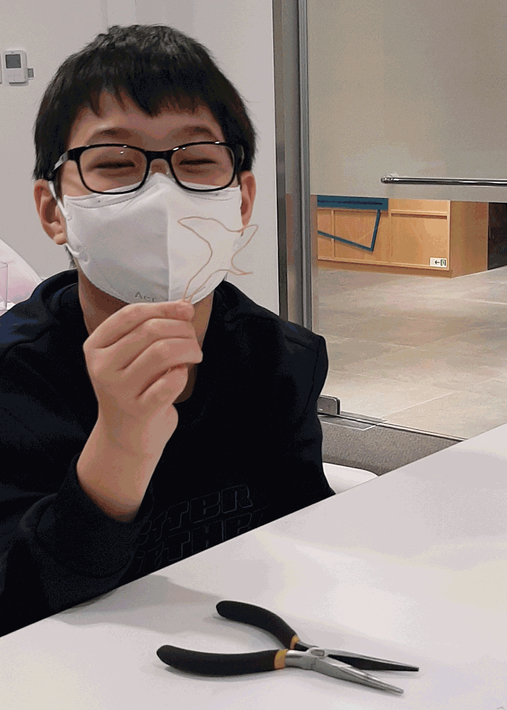 The prepared wire in a hurry was thick and not easy to bend, but they did not mind at all and participated with full of joy. I was very impressed.