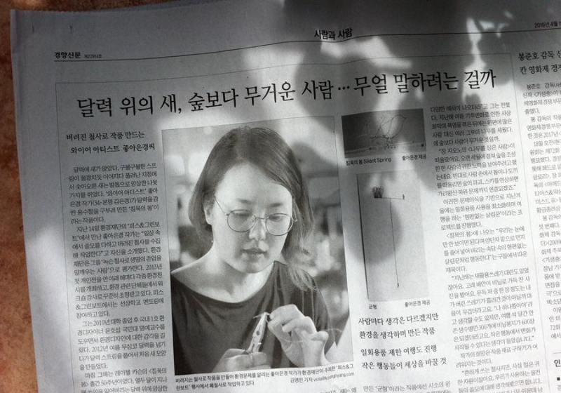 경향신문 '달력 위의 새, 숲보다 무거운 사람 …무얼 말하려는 걸까' [사람과 사람] 버려진 철사로 작품 만드는 와이어 아티스트 좋아은경씨