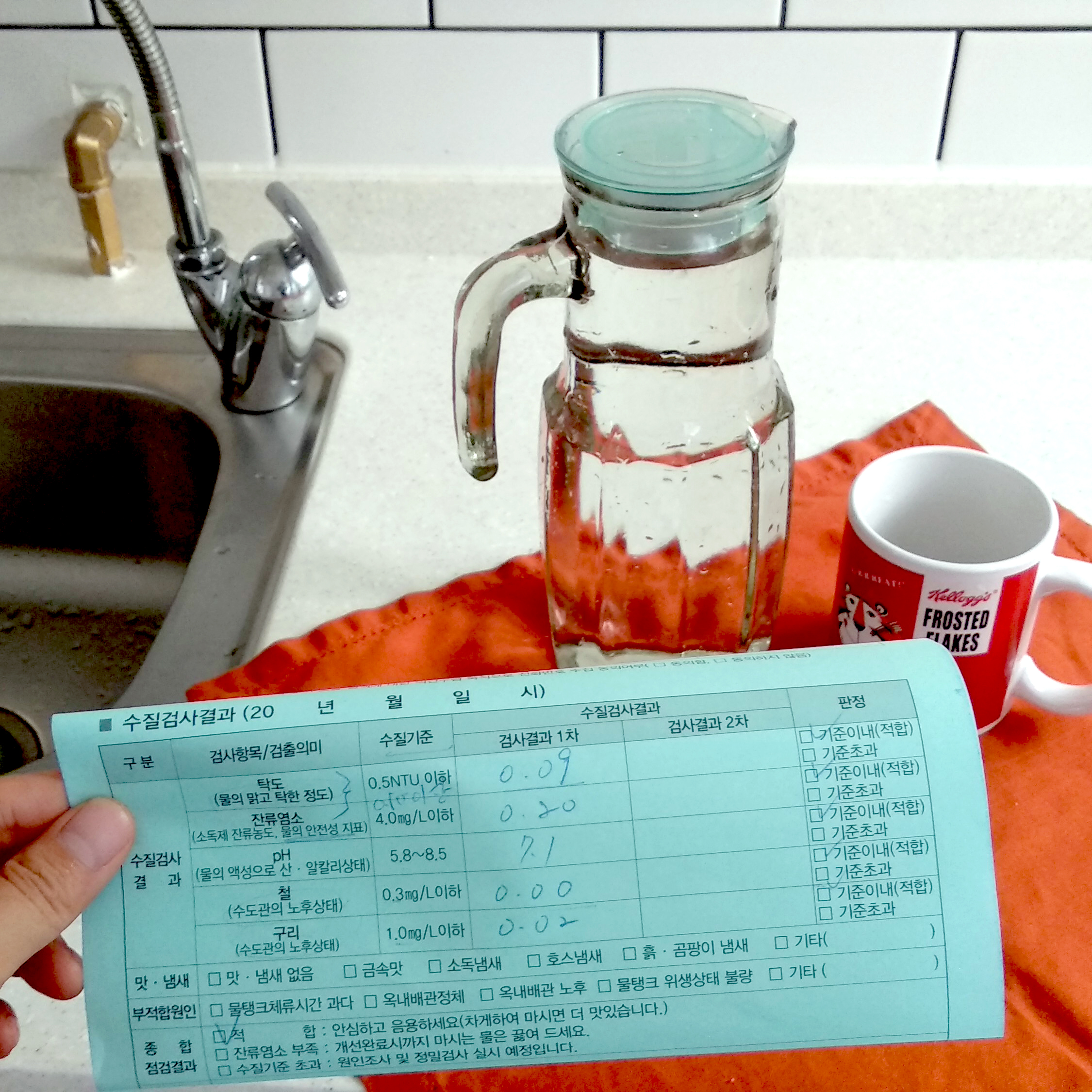 방문하신 기사님께서 내내 철저히 관리하고 있으니 굳이 검사를 받지 않아도 믿고 마실 수 있다고 강조하셨어요. 짧은 검사 시간이었지만 여러 설명을 직접 들을 수 있어서 정말 좋았습니다.