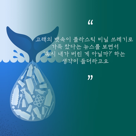 "고래의 뱃속이 플라스틱 비닐 쓰레기로 가득 찼다는 뉴스를 보면서 '혹시 내가 버린 게 아닐까?' 하는 생각이 들더라고요."