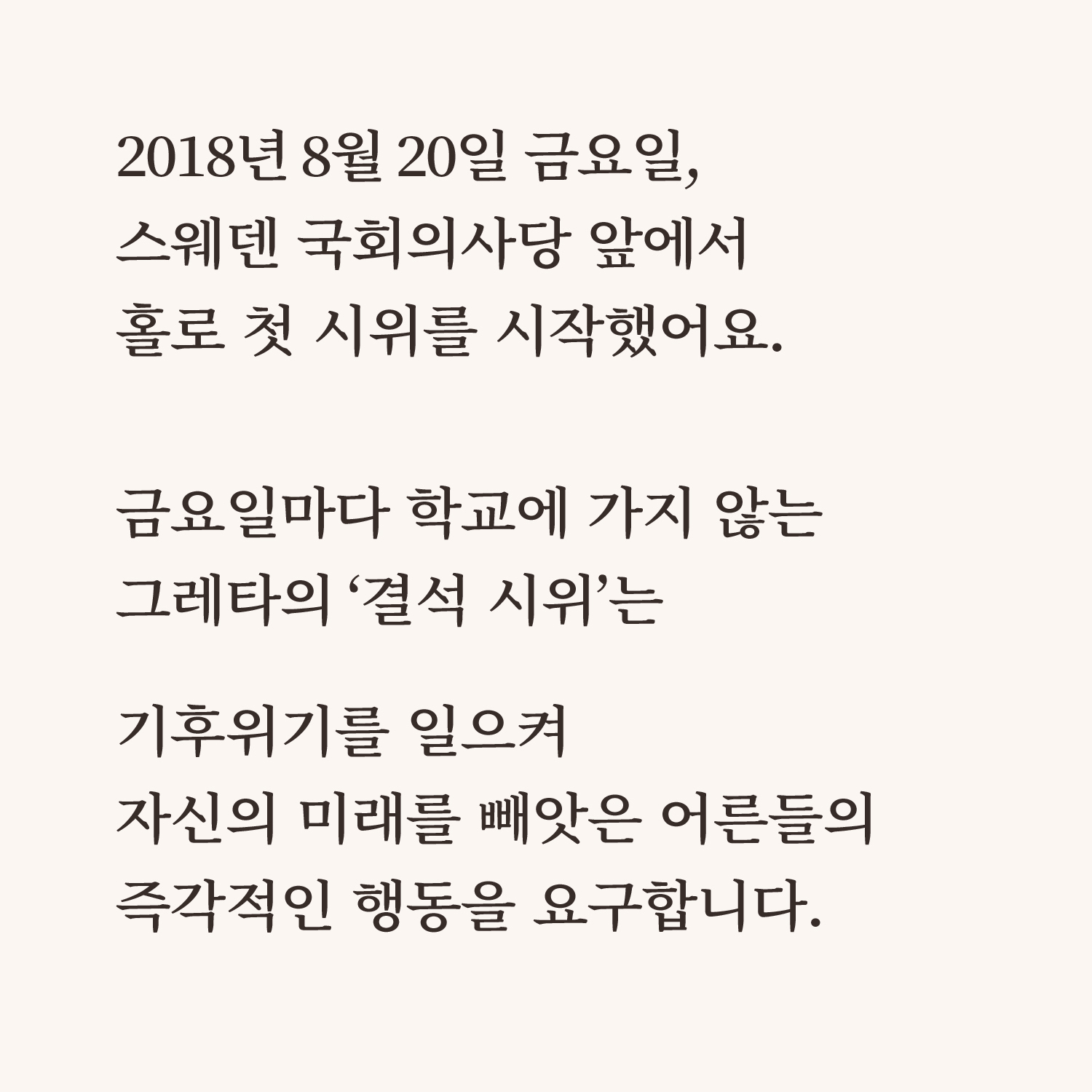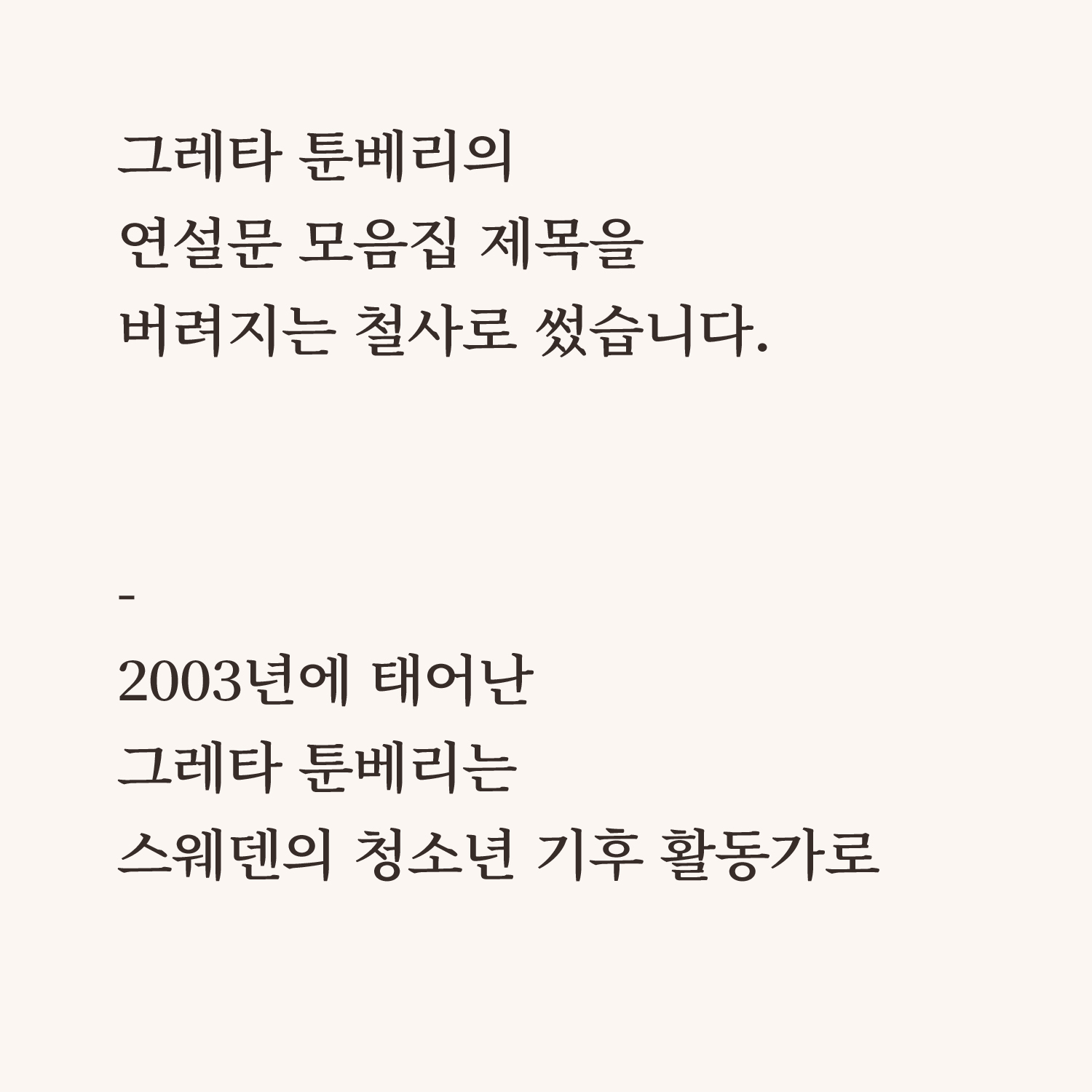 그레타 툰베리의 문장을 철사로 옮긴 <변화를 만드는 데 그 누구도 작지 않다>와 달력의 철사로 만든 <침묵의 봄> 시리즈를 출품했습니다.
